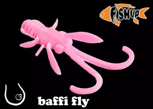 Baffi Fly od společnosti FishUp Lures je umělá aromatizovaná nástraha pro přívlač typu nymfa. Není to však obyčejná nymfa. Její „vousky“ mají velmi realistický pohyb. Doporučený způsob prezentace této nástrahy je za pomocí jigové hlavy, případně čeburašky, o váze 0,5g až 1g. Použití této váhové kategorie zaručuje pomalý propad vodním sloupcem, ideální pohyb vousků nástrahy, a tím pádem zvýšení atraktivity příslušné nástrahy. Můžeme použít například háčky Round Bent Fixative Shank ideálně velkosti 6. Baffi Fly se velmi rychle stala vyhledávanou především závodníky pro lov salmonidů na stojatých vodách. Díky unikátnímu aroma tuto nymfu lososovité ryby dobírají důvěřivě i několikrát za sebou. Sýrovou příchuť nasazený duhák přímo miluje. Díky tomu je to skvělá volba na poslední kola přívlačových závodů!