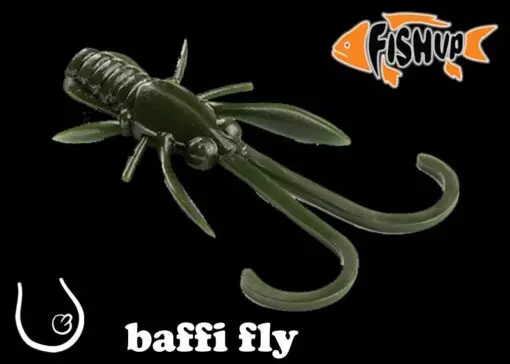 Baffi Fly od společnosti FishUp Lures je umělá aromatizovaná nástraha pro přívlač typu nymfa. Není to však obyčejná nymfa. Její „vousky“ mají velmi realistický pohyb. Doporučený způsob prezentace této nástrahy je za pomocí jigové hlavy, případně čeburašky, o váze 0,5g až 1g. Použití této váhové kategorie zaručuje pomalý propad vodním sloupcem, ideální pohyb vousků nástrahy, a tím pádem zvýšení atraktivity příslušné nástrahy. Můžeme použít například háčky Round Bent Fixative Shank ideálně velkosti 6. Baffi Fly se velmi rychle stala vyhledávanou především závodníky pro lov salmonidů na stojatých vodách. Díky unikátnímu aroma tuto nymfu lososovité ryby dobírají důvěřivě i několikrát za sebou. Sýrovou příchuť nasazený duhák přímo miluje. Díky tomu je to skvělá volba na poslední kola přívlačových závodů!