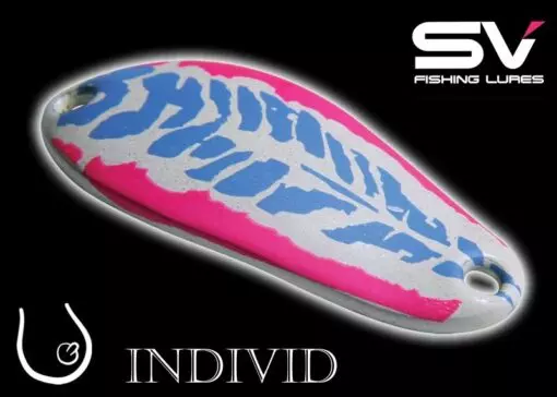 Třpytka INDIVID je klasikou a stálicí mezi plandavkami SV Fishing Lures. Jedná se o velice efektivní nástrahu na tlouště, okouny a pstruhy. Její jedinečný tvar způsobuje kroucení a vibrace během prezentace vodním prostředím. Vibrace velice příznivě působí na záběry neaktivních štik či candátů. V kombinaci s obrovskou barevnou škálou můžete vždy najít ideální kombinaci pro vyprovokování i té nejlínější ryby. Všechny nástrahy SV Fishing Lures jsou osazeny kvalitními háčky japonského výrobce Vanfook.