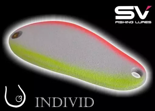 Třpytka INDIVID je klasikou a stálicí mezi plandavkami SV Fishing Lures. Jedná se o velice efektivní nástrahu na tlouště, okouny a pstruhy. Její jedinečný tvar způsobuje kroucení a vibrace během prezentace vodním prostředím. Vibrace velice příznivě působí na záběry neaktivních štik či candátů. V kombinaci s obrovskou barevnou škálou můžete vždy najít ideální kombinaci pro vyprovokování i té nejlínější ryby. Všechny nástrahy SV Fishing Lures jsou osazeny kvalitními háčky japonského výrobce Vanfook.