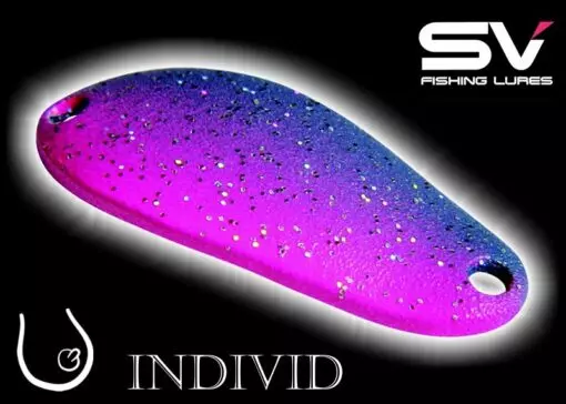 Třpytka INDIVID je klasikou a stálicí mezi plandavkami SV Fishing Lures. Jedná se o velice efektivní nástrahu na tlouště, okouny a pstruhy. Její jedinečný tvar způsobuje kroucení a vibrace během prezentace vodním prostředím. Vibrace velice příznivě působí na záběry neaktivních štik či candátů. V kombinaci s obrovskou barevnou škálou můžete vždy najít ideální kombinaci pro vyprovokování i té nejlínější ryby. Všechny nástrahy SV Fishing Lures jsou osazeny kvalitními háčky japonského výrobce Vanfook.