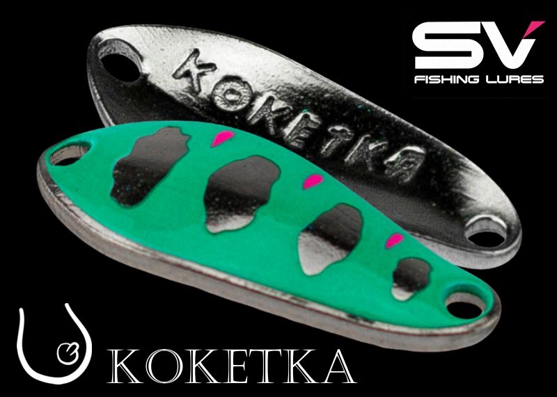 Plandavka KOKETKA od SV Fishing Lures je založena na klasickém „lžícovém“ designu, který je nejuniverzálnějším štičím lákadlem na trhu. Kromě štiky je tato nástraha účinná i na candáty, tlouště a další druhy ryb. KOKETKA o váze 1,2g umožňuje lov také nedravých ryb jako je plotice nebo cejn. Slouží také jako vysoce efektivní pstruhová nástraha. Všechny nástrahy SV Fishing Lures jsou osazeny kvalitními háčky japonského výrobce Vanfook.