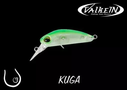 Tři základní faktory jsou třeba pro úspěch málo potápivých woblerů určených k lovu pstruhů na nádržích a jezerech. Zaprvé je to výrazný pohyb do stran i při pomalé prezentaci nástrahy, zadruhé stabilita během rychlého navíjení a v neposlední řadě je to vynikající vyváženost, která dovolí rybáři vést nástrahu v požadované hloubce. Všechny tato atributy nový wobler KUGA od firmy ValkeIN má. Oproti zavalitějšímu modelu KUGA FMR má mírně nižší frekvenci kmitů a to díky užšímu tělu. KUGA vyžaduje pro maximální využití svého potenciálu spíše pomalé vedení v horních partiích vodního sloupce.