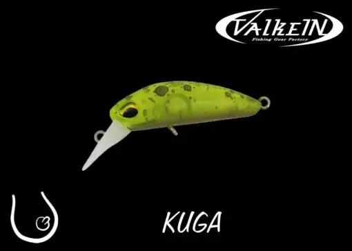 Tři základní faktory jsou třeba pro úspěch málo potápivých woblerů určených k lovu pstruhů na nádržích a jezerech. Zaprvé je to výrazný pohyb do stran i při pomalé prezentaci nástrahy, zadruhé stabilita během rychlého navíjení a v neposlední řadě je to vynikající vyváženost, která dovolí rybáři vést nástrahu v požadované hloubce. Všechny tato atributy nový wobler KUGA od firmy ValkeIN má. Oproti zavalitějšímu modelu KUGA FMR má mírně nižší frekvenci kmitů a to díky užšímu tělu. KUGA vyžaduje pro maximální využití svého potenciálu spíše pomalé vedení v horních partiích vodního sloupce.