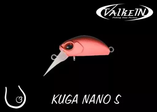 Modelová řada KUGA NANO S je nejnovější přírůstek do početné skupiny woblerů od firmy firmy ValkeIN. Přesto, že se jedná o nejmenší nástrahu tohoto typu, přináší spoustu zábavy. A to především díky své univerzálnosti. KUGA NANO S byla v Čechách i na Slovensku testována na pomalu tekoucích řekách a jezerech těmi nejlepšími přívlačovými specialisty, přičemž bylo dosaženo až zázračných úlovků pstruhů. Tento wobler je osazen háčky bez protihrotu.