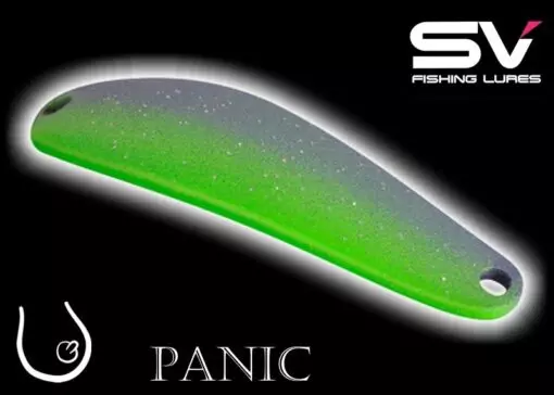 PANIC je nejvšestrannější a velice multifunkční vláčecí nástrahou v produkci SV Fishing Lures. Její geometrie umožňuje použití při jakékoliv rychlosti prezentace či síle proudu. Je možné s ní lovit na řece, ale stejných úspěchů dosahuje i na stojatých vodách. Náhozy na velkou vzdálenost jsou s ní hračkou. Pro ni charakteristické jsou pohyby napodobující nervózní pohyby rybek, kterými se dravci živí. Je to neuvěřitelně účinná nástraha při lovu štik, okounů, candátů a tloušťů. Všechny nástrahy SV Fishing Lures jsou osazeny kvalitními háčky japonského výrobce Vanfook.