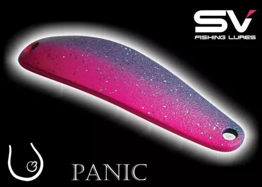 PANIC je nejvšestrannější a velice multifunkční vláčecí nástrahou v produkci SV Fishing Lures. Její geometrie umožňuje použití při jakékoliv rychlosti prezentace či síle proudu. Je možné s ní lovit na řece, ale stejných úspěchů dosahuje i na stojatých vodách. Náhozy na velkou vzdálenost jsou s ní hračkou. Pro ni charakteristické jsou pohyby napodobující nervózní pohyby rybek, kterými se dravci živí. Je to neuvěřitelně účinná nástraha při lovu štik, okounů, candátů a tloušťů. Všechny nástrahy SV Fishing Lures jsou osazeny kvalitními háčky japonského výrobce Vanfook.