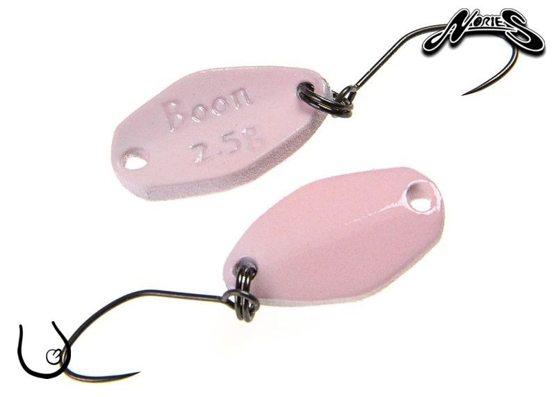 Zvláštní tvar plandavky MASUKUROUTO BOON vyvinula japonská společnost Nories k lovu lososovitých ryb ve spodní části vodního sloupce. Malá, poměrně těžká plandavka má za úkol lákat apatickou rybu stojící u dna. Tmavé barvy, v kterých je tato nástraha většinou vyvedena, mají představovat živočichy žijící u dna a představující rybí potravu. V některých případech kdy byly ryby odchovány na peletách může zapůsobit i tato podobnost. Plandavky MASUKUROUTO BOON jsou určeny k poskakování po dně, případně k pomalému plynulému pohybu. Jsou použity ekologické, u některých typů UV aktivní barvy. Osazeny jsou vynikajícími bezprotihrotými háčky Vanfook. Dodávané váhy: 2,5g a 3,5g.