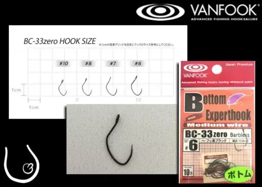 Přívlačový háček Vanfook BC-33 Zero je určen na nástrahy používané při lovu podél dna. Dosahuje vysoké pevnosti a odolnosti. Široký oblouk háčku umožňuje pevné zachycení ryby i při nepatrných záběrech.