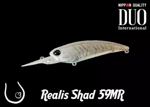REALIS SHAD 59MR je jeden z nejuniverzálnějších woblerů japonské značky DUO International. Všestranný model klasického tvaru je osvědčený a prověřený dlouhými roky své existence. Jeho výkony jsou excelentní i na revírech které jsou pod velkým rybářským tlakem. Tento wobler prokázal výbornou účinnost i ve velmi chladné vodě, kdy aktivita dravců prudce upadá. V těle wobleru REALIS SHAD 59MR je zabudovaný magnet, který fixuje pohyblivou zátěž během lovu. Zátěž se během náhozu přesune do zadní části wobleru a pomáhá jej stabilizovat během letu. Zároveň to prodlužuje délku náhozu. Po dopadu na hladinu je tato zátěž opět fixována magnetem. V chladnější vodě je tento wobler lépe prezentovat delším potažením kombinovaným delší, přibližně stejně dlouhou, pauzou.