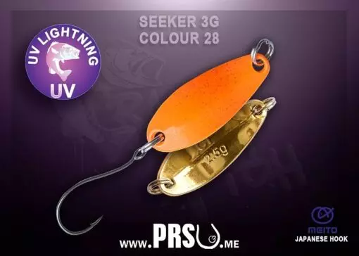 SEEKER – malá třpytka typu plandavka tvaru slzy od renomovaného výrobce Crazy Fish. Díky těžišti posunutému dozadu velice dobře létá. Při vedení vodním prostředím na stojatém revíru vytváří velké oblouky a tím láká prakticky všechny dravce. SEEKER poskytuje rybáři výbornou zábavu během jarních i podzimních lovů. V prostředí České republiky se jedná o nepostradatelnou nástrahu při lovu pstruha duhového. Vyrábí ve třech váhových kategoriích. Dobře známých a osvědčených 2,5g a 3g. Novinkou roku 2019 je pak váha 2g. Třpytka je osazena háčkem MEITO. Háček je možné vyměnit dle vaší chuti za luxusní háček Vanfook z naší nabídky.