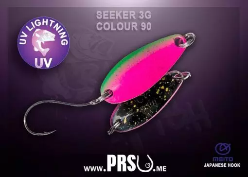 SEEKER – malá třpytka typu plandavka tvaru slzy od renomovaného výrobce Crazy Fish. Díky těžišti posunutému dozadu velice dobře létá. Při vedení vodním prostředím na stojatém revíru vytváří velké oblouky a tím láká prakticky všechny dravce. SEEKER poskytuje rybáři výbornou zábavu během jarních i podzimních lovů. V prostředí České republiky se jedná o nepostradatelnou nástrahu při lovu pstruha duhového. Vyrábí ve třech váhových kategoriích. Dobře známých a osvědčených 2,5g a 3g. Novinkou roku 2019 je pak váha 2g. Třpytka je osazena háčkem MEITO. Háček je možné vyměnit dle vaší chuti za luxusní háček Vanfook z naší nabídky.