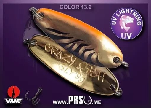 Umělá nástraha SLY od Crazy Fish vyniká možností opravdu dlouhého náhozu a to především díky tvaru těla, které má oválný tvar. Nástraha je vyrobena ze silného, těžkého kovu. To jí propůjčuje vynikající vlastnosti a možnost použití i v proudné vodě. Také je dobře využitelná při lovu v hlubších vodách. Výborně se hodí pro lov štik a ve velikosti 4g také na tlouště, okouny a pstruhy! Existují tři váhové kategorie 4g, 6g a 9g. U plandavek 4g a 6g jsou použity háčky MEITO. Nástraha 9g je okována háčkem VMC. Háčky je možné vyměnit dle vaší chuti luxusními háčky Vanfook z naší nabídky.