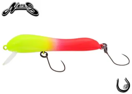 Wobler SWEEK 52 od Nories je nástrahou určený k lovu pstruhů na hladině. Nories SWEEK 52 se lehkými pomalými trhavými pohyby prezentuje těsně po vodní hladinou. Napodobuje zraněnou rybičku či hmyz, který spadl na vodu. Při rychlejším pohybu získává SWEEK 52 rotující akci. Při lovu dosahuje maximální hloubky 30 cm, tím poutá pozornost aktivně lovících pstruhů. Díky tomu je SWEEK 52 velmi dobrou a fungující nástrahou při lovu lososovitých ryb, také na řekách a potocích! Je osazen dvěma kvalitními bezprotihrotými jednoduchými háčky Vanfook.