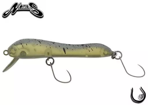 Wobler SWEEK 52 od Nories je nástrahou určený k lovu pstruhů na hladině. Nories SWEEK 52 se lehkými pomalými trhavými pohyby prezentuje těsně po vodní hladinou. Napodobuje zraněnou rybičku či hmyz, který spadl na vodu. Při rychlejším pohybu získává SWEEK 52 rotující akci. Při lovu dosahuje maximální hloubky 30 cm, tím poutá pozornost aktivně lovících pstruhů. Díky tomu je SWEEK 52 velmi dobrou a fungující nástrahou při lovu lososovitých ryb, také na řekách a potocích! Je osazen dvěma kvalitními bezprotihrotými jednoduchými háčky Vanfook.