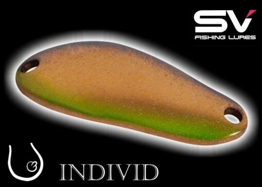 Třpytka INDIVID je klasikou a stálicí mezi plandavkami SV Fishing Lures. Jedná se o velice efektivní nástrahu na tlouště, okouny a pstruhy. Její jedinečný tvar způsobuje kroucení a vibrace během prezentace vodním prostředím. Vibrace velice příznivě působí na záběry neaktivních štik či candátů. V kombinaci s obrovskou barevnou škálou můžete vždy najít ideální kombinaci pro vyprovokování i té nejlínější ryby. Všechny nástrahy SV Fishing Lures jsou osazeny kvalitními háčky japonského výrobce Vanfook.