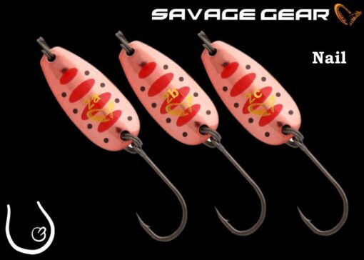 Savage Gear Nagel 2, Farbe Kupferrot, 28 mm, Preis für 3 Stück, jeder Nagel in der Packung hat ein anderes Gewicht (2,5 g, 3 g, 3,5 g). Die 3,5-g-Pfanne ist mit einem Drillingshaken ausgestattet.