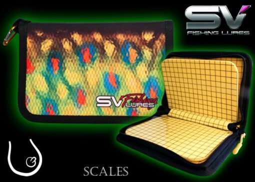 Jste zapáleným přílvačovým nadšencem a neustále řešíte problém jak vhodně uložit své drahocenné nástrahy při výpravách k vodě? Stále ztrácíte plandavky z kapes rybářských vest? Máte problémy s háčky nástrah, které se pokaždé zachytí na tom nejméně vhodném místě? Těmto lapáliím je konec! Firma SV Fishing Lures uvádí na trh pouzdro (tzn. penál) na přívlačové nástrahy Scales, které vaše problémy navždy vyřeší. Taštička kompaktních rozměrů 130x200x30mm se snadno vloží do kapsy či jednoduše připne pomocí karabiny k opasku. Prostor pro ukládání plandavek je vyroben z EVA materiálu. Mezi stěnami pouzdra je vložen plast určený k oddělení a lepší organizaci nástrah. Vnější, graficky velice dobře vyvedený, voděodolný povrch je z materiálu Oxford 600 D. Taštička se uzavírá dvojitým zipem YKK pro jednodušší manipulaci. Nejlepší nakonec… do tohoto pouzdra se vejde až 200ks přívlačových nástrah!!!